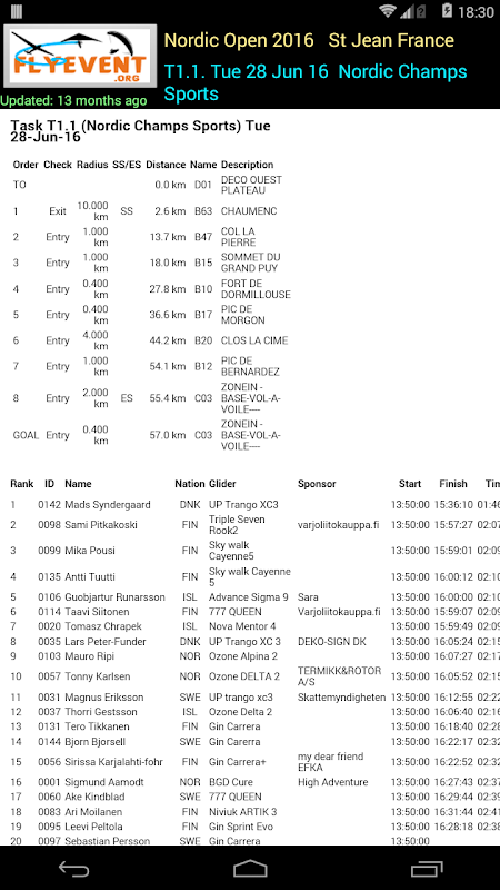 The FlyEvent APP shows the latest competition results from the FlyEvent server in a simple and mobile-friendly way so competitors and organizers can quickly check results.