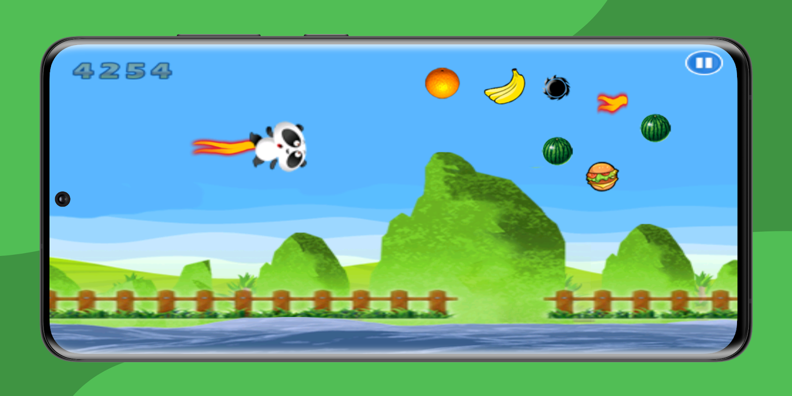 飞翔、跳跃、收集!和可爱的熊猫一起享受无穷乐趣——跳跃并收集水果