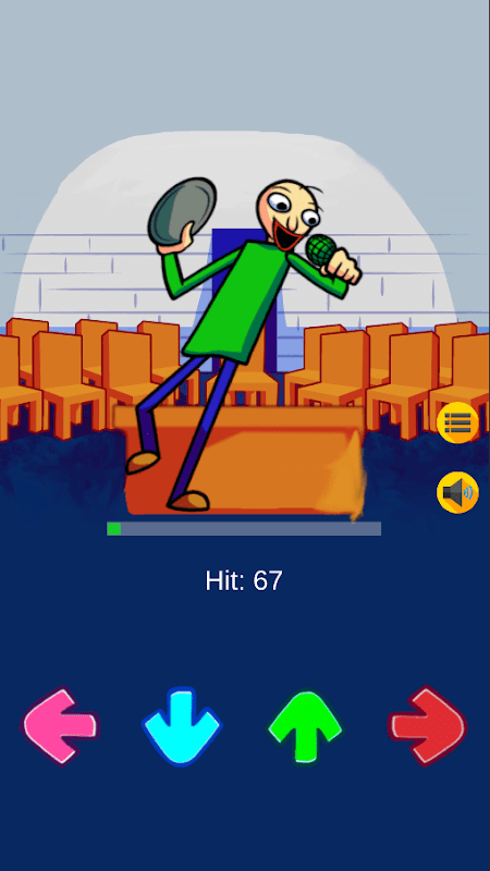 你应该在 FNF Baldi Mod Test 游戏中做什么?您需要与主角一起,通过单击设备屏幕上的箭头来获得最高分!开始游戏前,选择你最喜欢的曲目和Baldi的状态,然后点击播放。之后,在FNF Baldi测试角色中,屏幕上会出现主角和四个箭头,您将通过它来控制英雄。只要您点击箭头,角色就会唱出特定的音符并做出特定的动作。如果您只想听到 Baldi 的声音,您可以关闭背景音乐。为此,您需要按下设备屏幕上的蜂鸣形按钮。