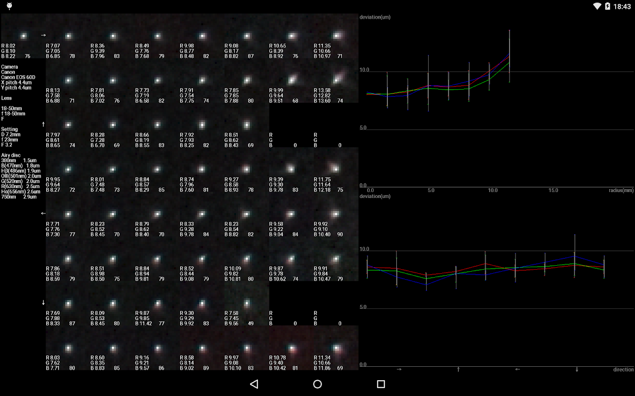 このアプリは写真の中央から周辺までのピント状態を平均画像とグラフで確認することが出来ます。