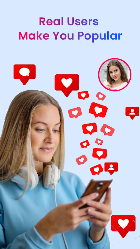 更多追随者和真正的粉丝。增加视频中的点赞数和关注度。没有机器人!