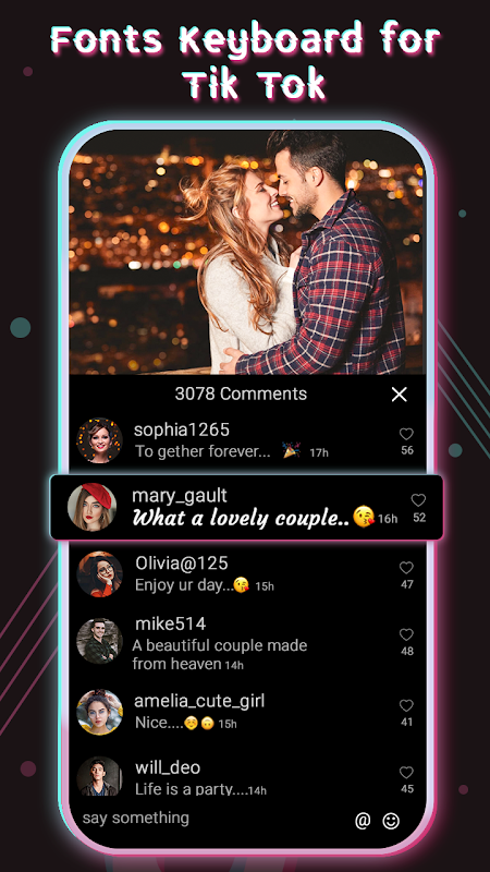 Share your words on social and Tictoc through our one and only Fonts Keyboard for Tik Tok - TicToc Fonts app. Now it's easy to share your amazing font style on your post with simple click. App which has montage collection of keyboard with which you can easily share stylish font on social media. Get more likes and comments on your post with stylish text.