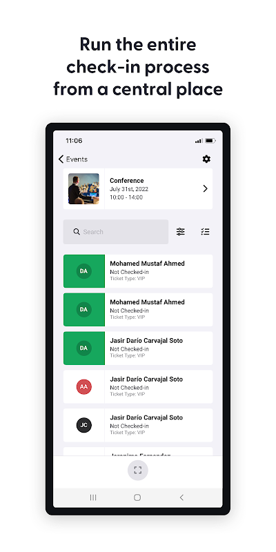 在应用程序中隐藏与会者和/或购票者的所有个人信息。只有与会者姓名可见,以便签到。