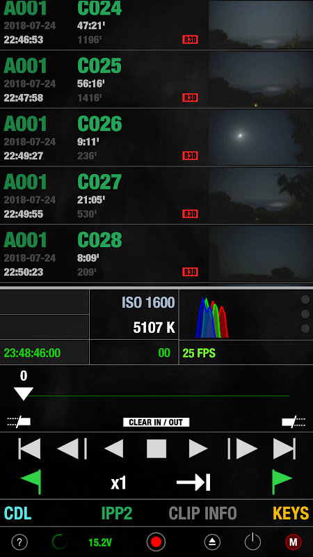 - LOOK / IPP2:使用多速滑块或手动值输入设置相机外观:对比度,曝光,饱和度,阴影,亮度,RGB增益,开尔文,色调和FLUT。色温预设,自动白平衡,ISO,色彩/伽马空间。
