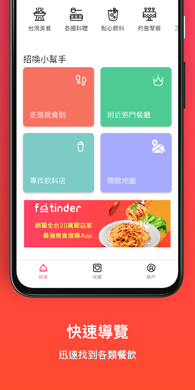 走到哪里,吃到哪里,FooTinder 为您推荐美食餐厅与料理!下载我们的APP,轻松解决三餐大小事!