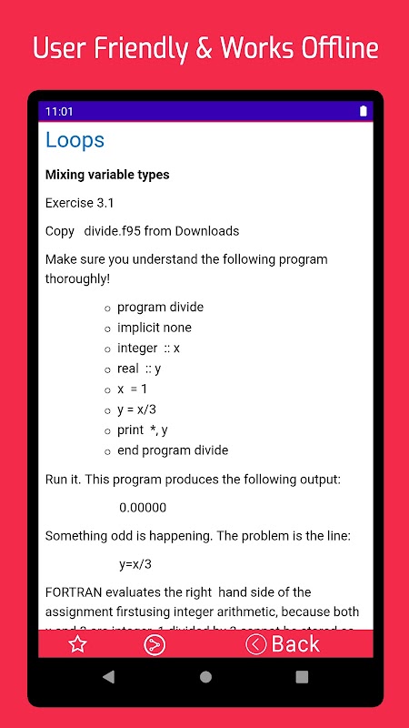 Fortran programming book is an educational application. If you are looking for learn fortran programming app so you are in a right place. This application will provide you most important & informative lessons. This basic fortran programming app will give you formula & methods.