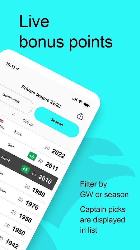 在比赛进行时查看实时 FPL 积分、奖金和小联赛排名。