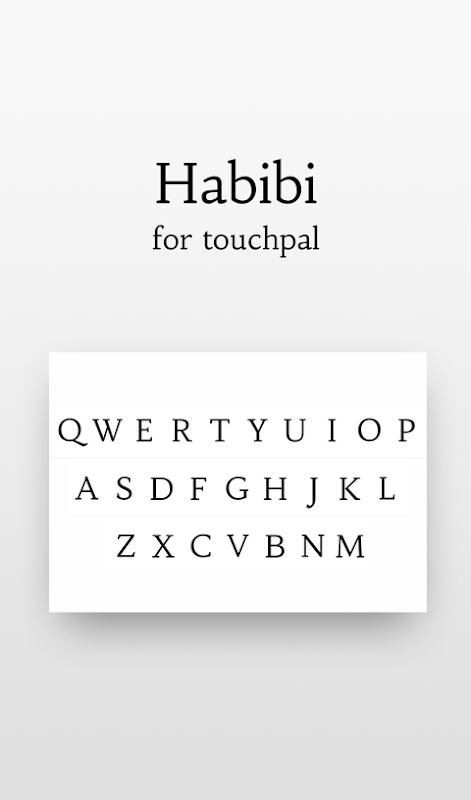 TouchPal Free Habibi Regular Cool Font is designed to apply the COOLEST and most STYLISH fonts for TouchPal Keyboard. Dozens of fonts to customize your TouchPal Keyboard for FREE!