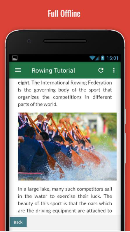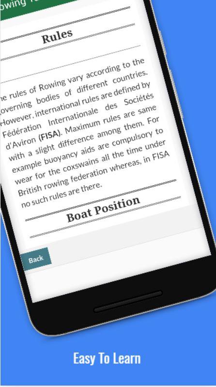 For those of you who want to learn Rowing and want to find the right tutorial. You should try this app. Inside Learn Rowing Offline app there is a complete tutorial and guide to learn Rowing from beginner level. All tutorials are precisely and attractively designed to make it easier for you to learn. All the steps in this tutorial are very easy to learn and follow.