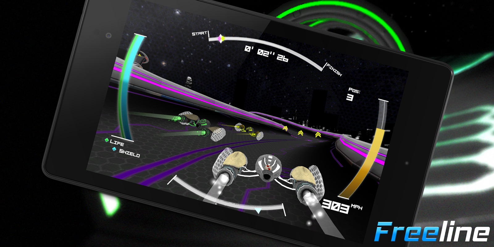 Freeline is a racing game set in a futuristic world where players have to move their body from right ot left to control their ship.