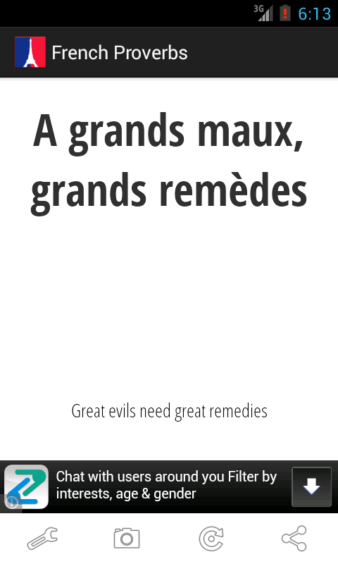 The app can be used to take a picture with the French Proverb appearing as a caption!
