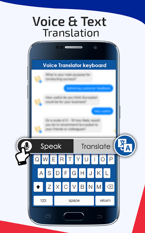 French voice & chat translator keyboard will translate your text either type by fingers or by voice