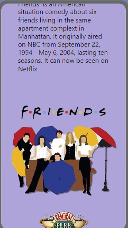 欢迎使用该应用程序,朋友们!这个应用程序是关于经典电视节目《老友记》的信息。