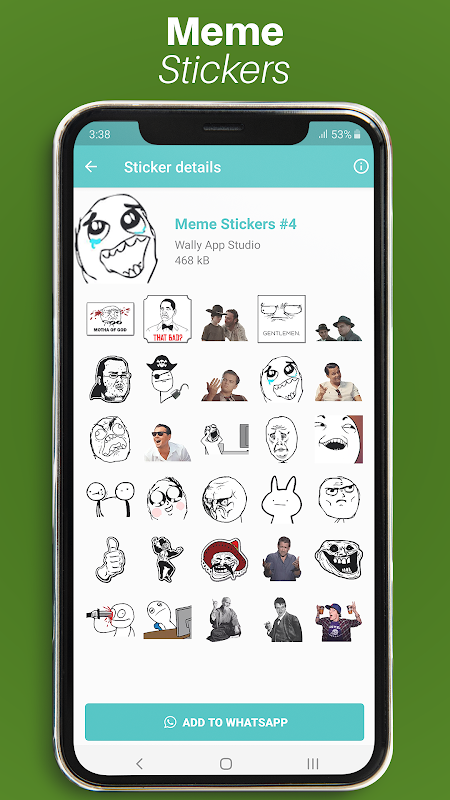 Funny Stickers for WhatsApp. More than 500 funniest memes sticker packs including Frog memes, Happy Memes, Troll Memes, Dog Memes and much more to share