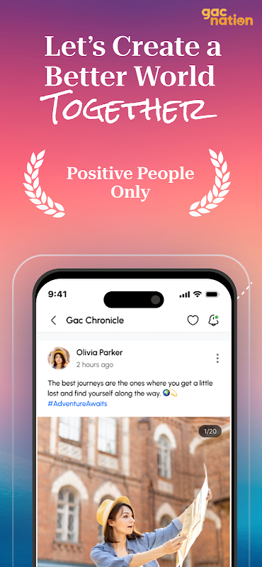 欢迎来到 gac nation,这是一款令人振奋的社交媒体应用程序,积极、正念和良好的氛围营造了一个充满活力的社区。厌倦了网上的负面情绪? gac nation 是您的避难所——一个与志同道合、重视友善和有意义的互动的人联系、分享和共同发展的地方。