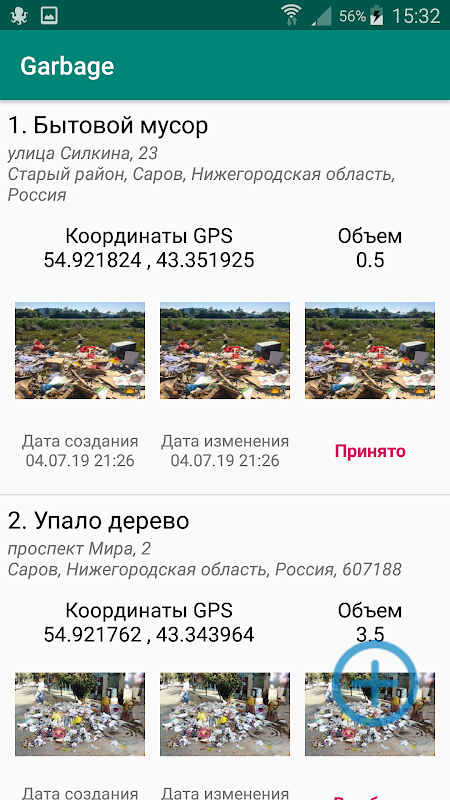 Приложение Garbage создано за 24 часа для участия в стартапе г.Саров