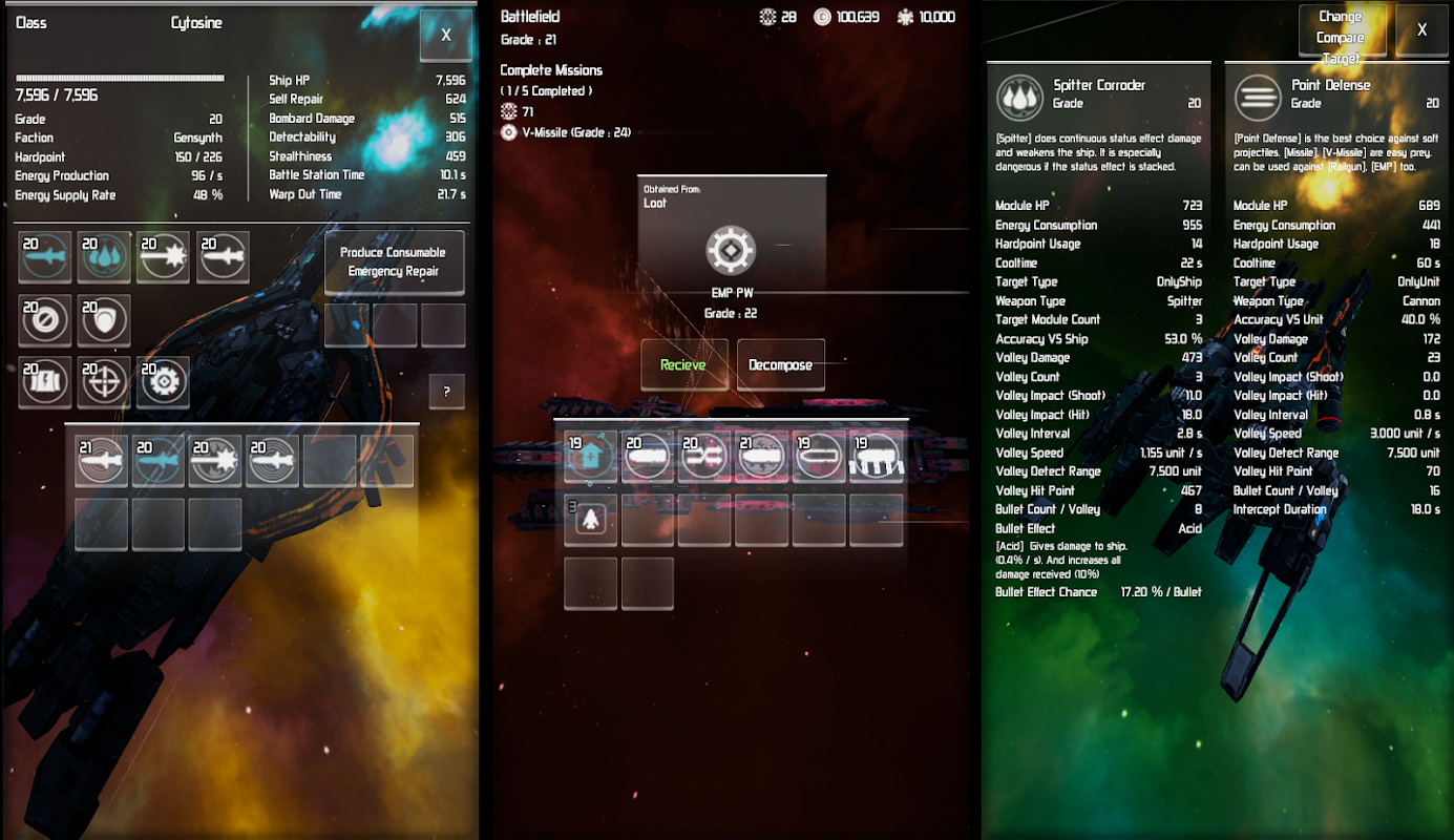- 使用点防御、盾牌、副推进器、维修人员等来保卫自己。