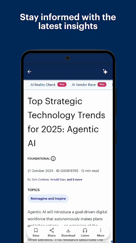 Gartner 为高管及其团队提供可操作、客观的见解。借助 Gartner Mobile,您无论身在何处都可以访问我们的专家指导和工具。