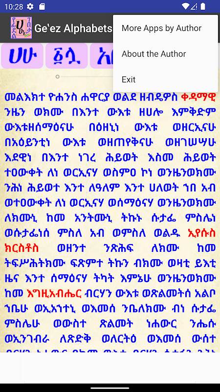 This App can be used to know the shapes of local Alphabets. To use this app, you don't need a special keyboard or font to be installed. Voice is enabled for Melikte Yohannes, HaHu, and Abugida in this version. You can now pause, continue, etc. the sound, for Melikte Yohannes