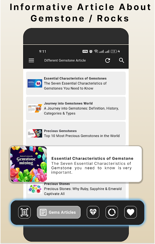 1 : 即时识别: 拍摄照片或上传图片,立即识别任何宝石、岩石或水晶。