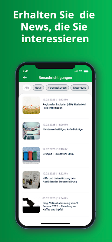 欢迎使用 Sisseln 社区应用程序 - 您的中央平台,了解 Sisseln 的所有重要信息、新闻和服务!