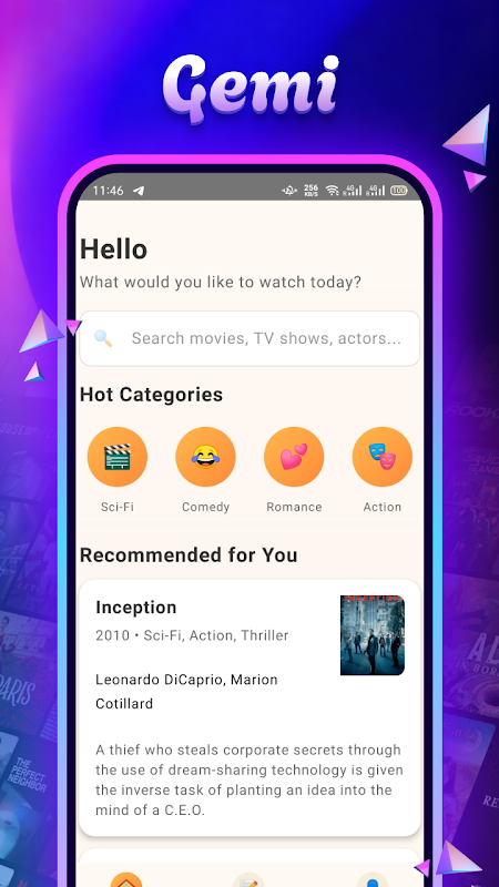 Gemi 会根据您的观影偏好,智能推荐符合您口味的电影。强大的搜索功能可让您搜索电影、电视剧和演员,快速找到您想要的内容。