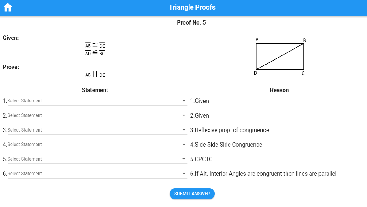 几何证明练习是适合想要攻克几何证明的学生的终极应用程序。通过 45 个引人入胜的两栏证明,您将提高逻辑推理和解决问题的技能。