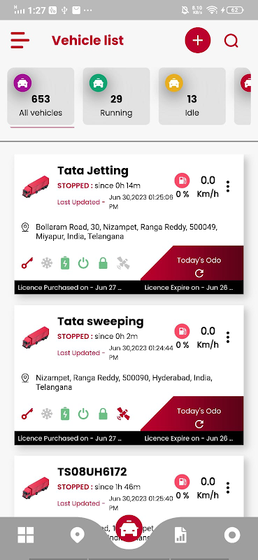 This app helps to live tracking of vehicles and can see tracking history along with speed , distance covered and idle time of vehicle .User can set Geofencing of area and will be notified every time he/she leaves or enter geofence , if the speed exceeds more than 80 user will be notified for the same.