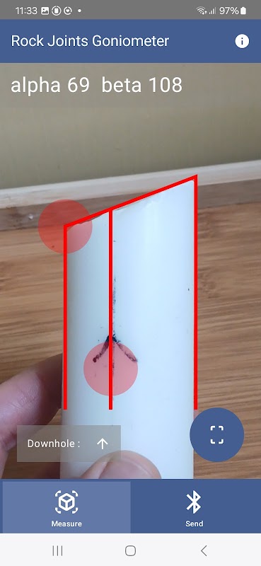 使用此应用程序测量从钻孔中回收的岩石碎片上的标准化角度 alpha/beta;即对岩石的接合系统进行采样。