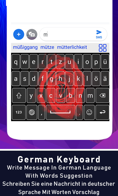 多语言键盘现已在搜索商店中提供。我们有最好的渐变主题设计供您更换键盘。我建议所有键盘用户使用德语英语键盘更改键盘布局。多个键盘,带有用于多键盘的快速打字键盘。如果您对移动默认键盘感到无聊,请使用带有自定义主题、自定义颜色、表情符号、贴纸的德语键盘。