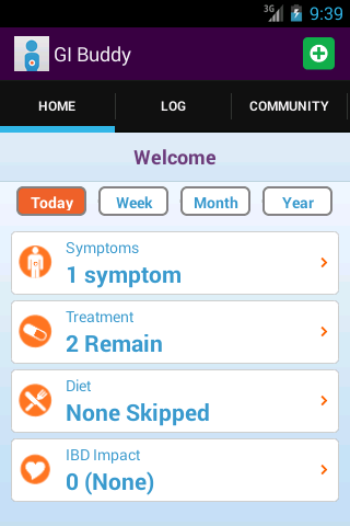 GI Buddy is designed to help you easily and conveniently track important aspects of your inflammatory bowel disease (IBD) and create comprehensive views of your health to share with your healthcare team. Log your Crohn’s disease or ulcerative colitis symptoms. Stay on top of your IBD treatment. Record the foods you eat. Monitor your overall well-being. And see how everything you’re logging comes together in email reports!