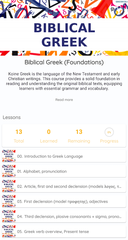 使用 Ginoskos 学习应用程序学习古老的圣经语言希腊语 (Koine) 和希伯来语。 学习对圣经研究也必不可少的亚拉姆语和拉丁语。