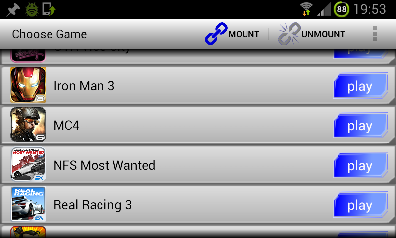 **有一些游戏(例如:Asphalt6)离开时仍会在背景执行,导致挂载/卸载逾时讯息时,请再按挂载/卸载一次.