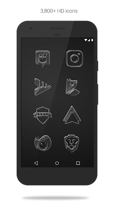 • 包含超过 3,800 种不同的干净、平坦和简单的透明玻璃图标,以及多种默认玻璃图标,例如电话、联系人、相机等。