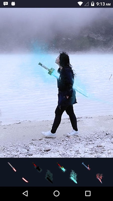 If you are still wondering how to make photos goblin sword, then this app is the solution. Very easy to use, you can simply take a photo you want to edit, then choose a goblin sword there. You need to know, in this application there are various goblin sword, there are blue and green.