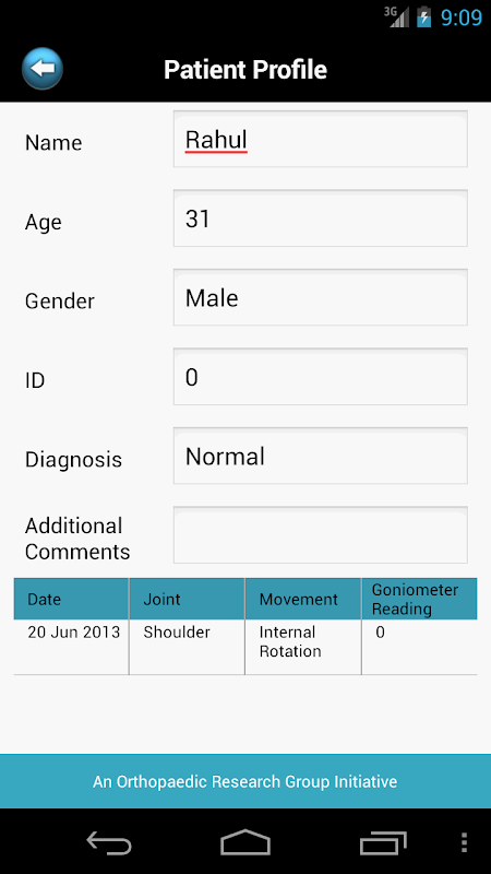First app to combine Goniometer Readings with basic patient records