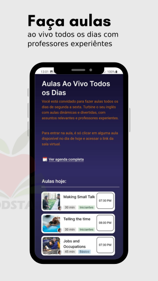 在 Goodstart+ 应用程序中,您将看到可提高英语水平的学习材料列表。此外,您还可以参加周一至周五每天举行的现场英语课程。