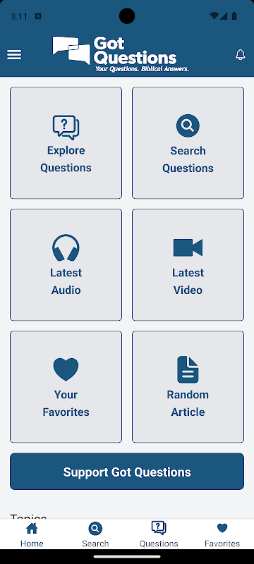 该应用程序有超过 7,200 个关于圣经的常见问题,按主题组织,并具有内置搜索功能、为方便将来访问而为文章添加书签的功能、自动下载新的/更新的文章,以及如果您的问题的答案尚未在应用程序中提供时向我们提问的选项。