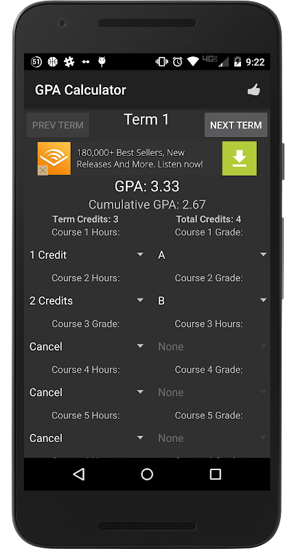 如果你正在寻找一个伟大的,简单的GPA计算器只是足够的功能,以避免压倒性然后检查出简单的GPA计算器。简单的GPA计算器这个GPA计算器的功能,加上能够改变类/项名称和档次的标签(如A +,A,A-)。选择是你,但如果你想要一个简单的GPA计算器,只是适量的功能,然后检查了简单的GPA计算器!
