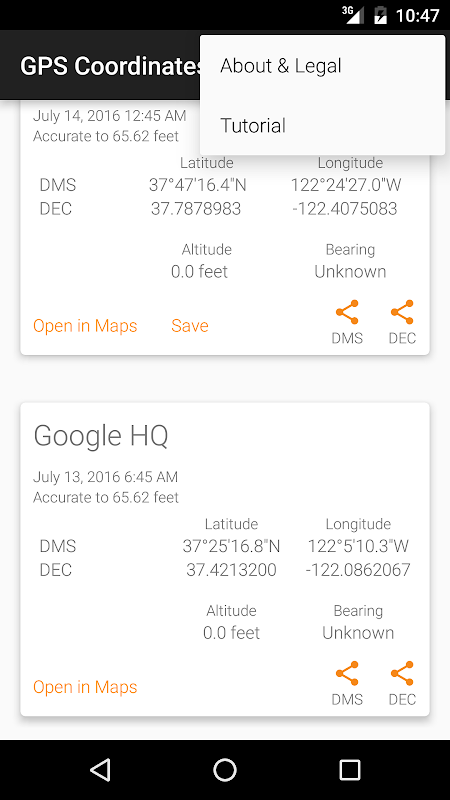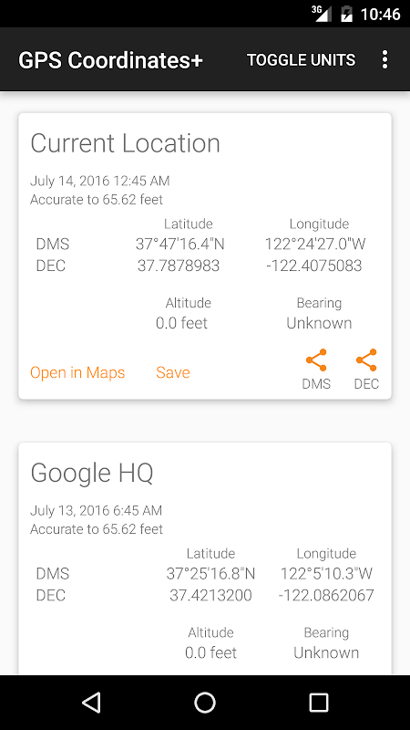 This app is great for geocaching and field work / testing that requires GPS coordinates. Save your favorite landmarks, restaurants, hot Pokemon Go spots :)...