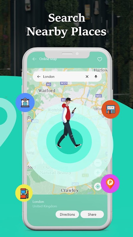 让我们探索附近的地方有什么: 3D 地球地图:实时地球视图应用程序向您显示附近的地方有什么。查找附近任何想要的地方,例如餐馆、银行、医院、ATM 机、酒吧等。