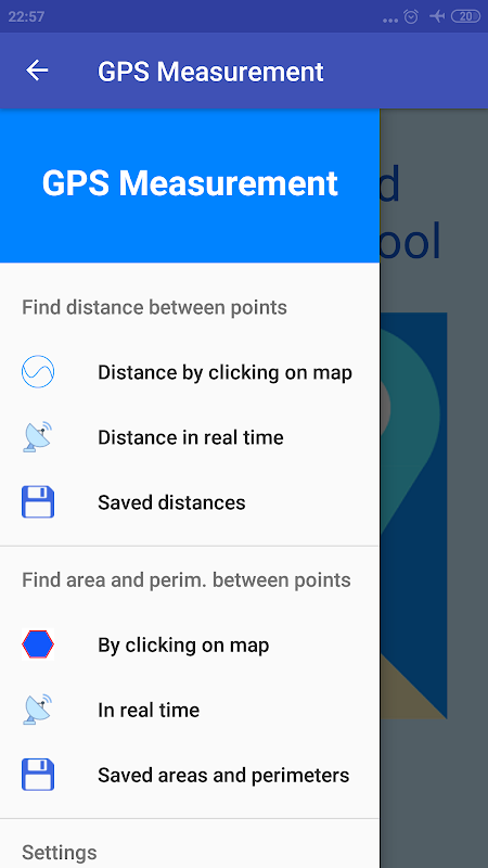 您可以通过点击地图或通过步行、驾驶、跑步等实时使用 GPS 来计算两个或多个点之间的距离。您还可以计算田地、建筑物、森林区域、您的财产的面积和周长通过点击地图或通过步行、驾驶、跑步等方式实时使用 GPS 或地区等。您可以保存测量结果并进行管理。在设置中,有许多选择可帮助您根据需要调整应用程序。