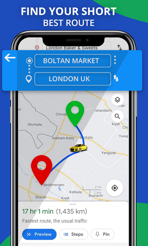 GPS route finder & Driving Directions is the best route map driving direction app to find map address and map location.Driving Navigation provide you the accurate driving direction and map address of your target place. Search anything directly go on search bar. GPS route navigation locate friends through map navigation explorer address app. GPS live map Direction App also measure the distance from start point to end point. Gps Voice Assistant or Directions app is a modern GPS voice route finder feature to directly search any address, location or meaning directly on internet search option and secure time.