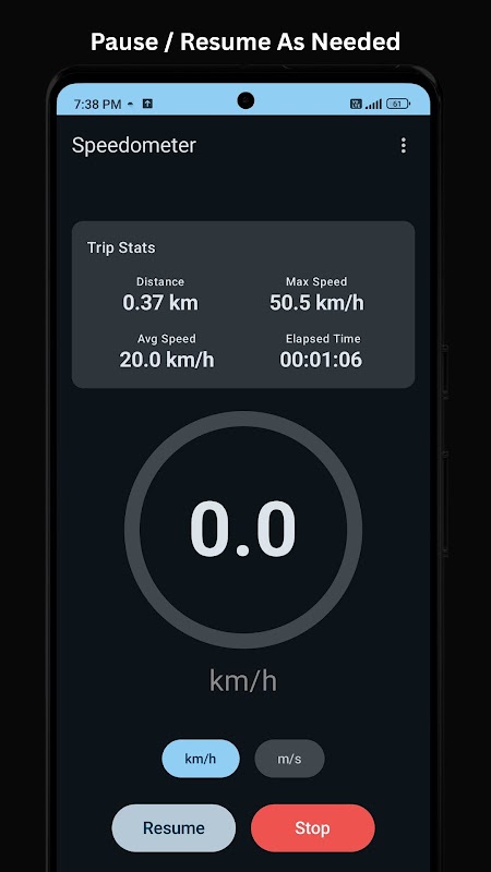 - 即时单位切换:可直接从主屏幕轻松切换公里/小时 (km/h) 和米/秒 (m/s)。