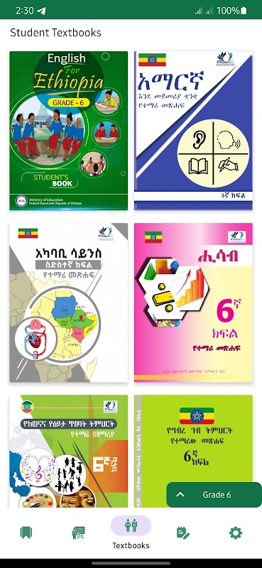 Ethio Books 是一款功能全面的移动应用程序,可让您轻松获取所有教材,助您为一、二、三、四、五年级和六年级的成功做好准备。我们功能丰富的平台,让您体验数字化学习的便捷性和灵活性。