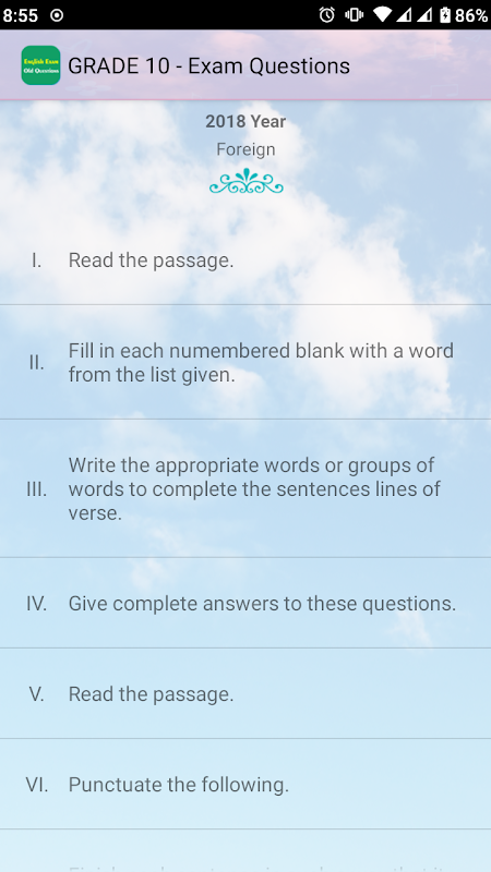 这个程序是为那些将在缅甸参加10年级预科英语考试的学生而设计的。它包括从2009年到2018年的英语考试旧问题的集合。
