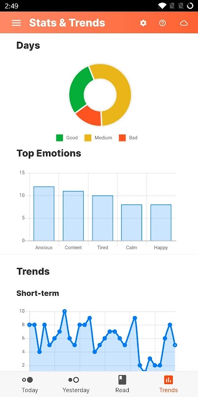 假设您正在挣扎于某种特定的情感(例如沮丧或愤怒),并试图找出触发因素。仅在您感到那种情绪的那一天读日记会不会有所帮助?这是我们的情绪跟踪可以提供帮助的一种方式。但是,两种情绪呢?在您悲伤和愤怒的日子里发生了什么?您也可以查看那些日子。虽然...也许您不想。