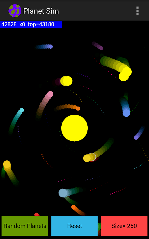 Play with planetary orbits in this fun exciting space physics sandbox. Try to make a solar system full of asteroids, moons, dwarf planets, giant planets, and suns. Touch the screen to add a planet. Drag your finger across the screen to give a planet a little bit of velocity. Enough speed will cause your planet to orbit. When planets collide, they combine together into a larger planet.