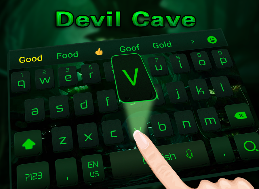 安装恶魔洞窟绿色主题键盘让你手机的各种很酷的动画效果独特。
