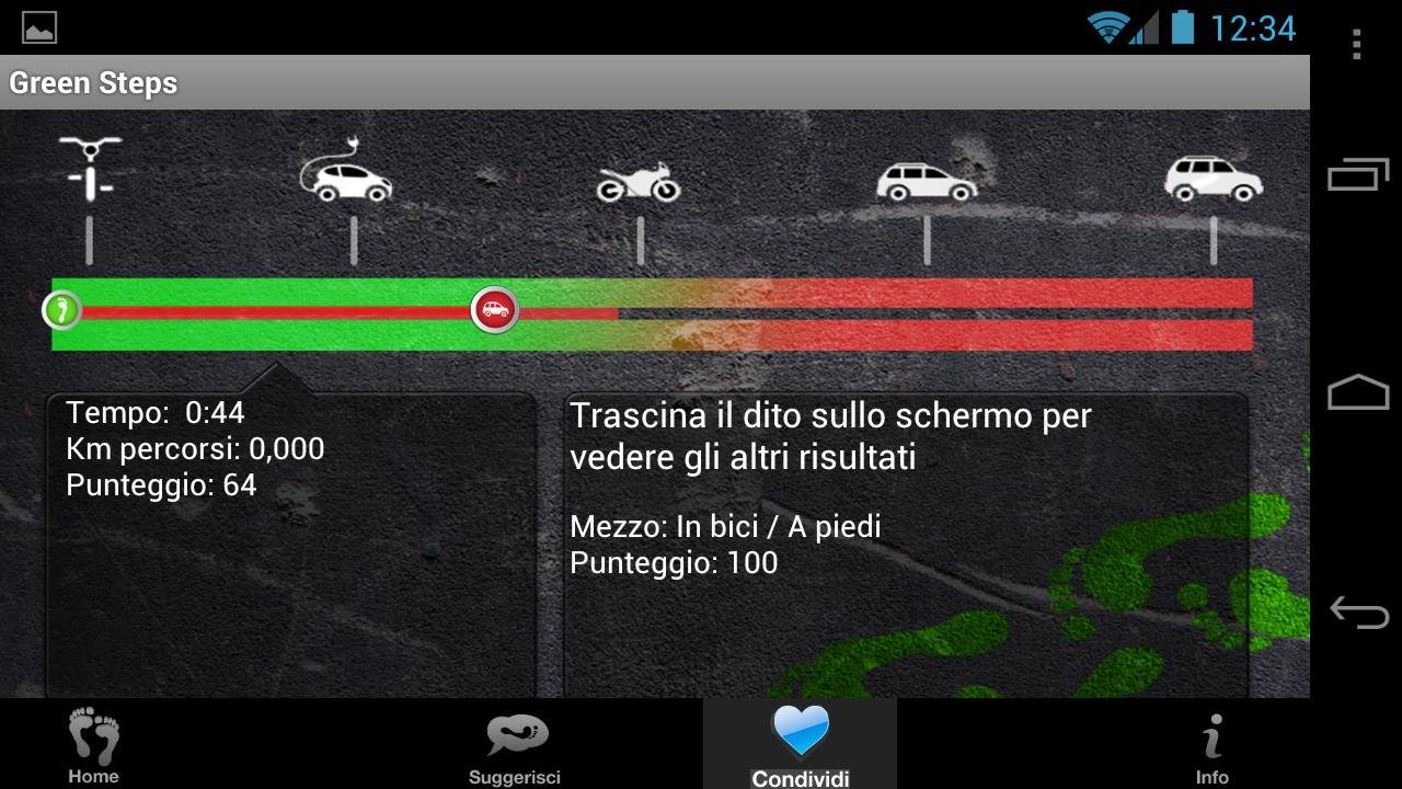 At the end of your travel, Green Steps scores it: you get 100 points for a perfectly green travel, zero for a very polluting one. You can also share your scores with social networks or email.